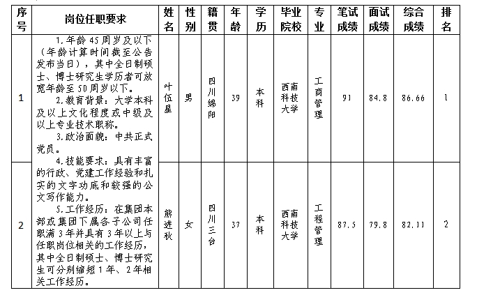 根據(jù)綿陽(yáng)市城市停車管理有限公司發(fā)布的競(jìng)聘公告及競(jìng)聘相關(guān)規(guī)定,經(jīng)筆試、面試等程序,現(xiàn)將筆試(面試)成績(jī)予以公示。
